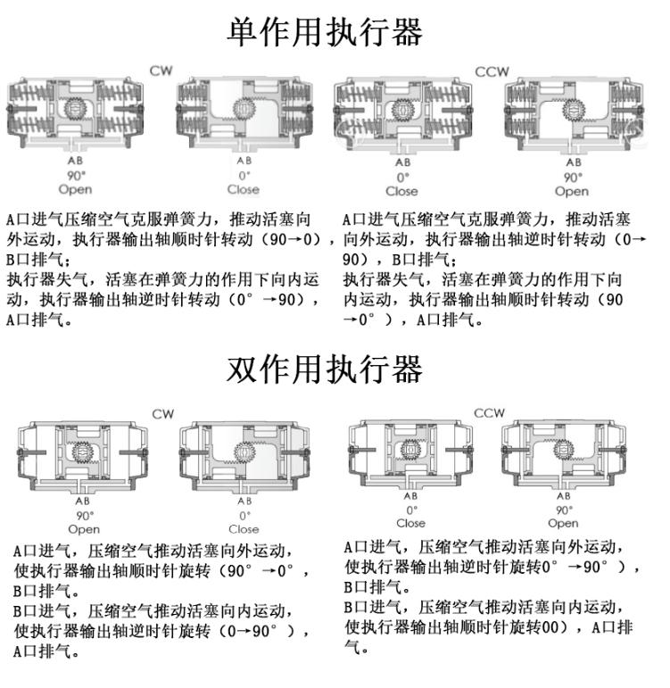 調節:活塞在兩端位置有±5°的調節范圍,即:0°~90°±5°(活塞標準裝配)或者0°±5°~90°(活塞反向裝配)。