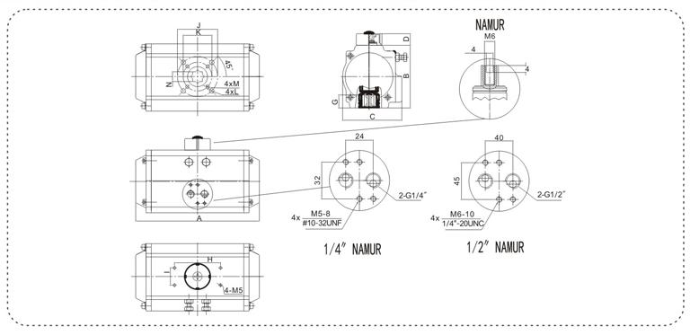 本公司生產的GT氣動執行器和閥門的接口符合ISO5211,DIN3337;執行器和控制閥(電磁閥等)的接口符合 NAMUR;執行器和信號單元(限位開關,定位器)的接囗符合 NAMUR;